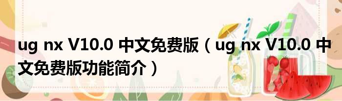 ug nx V10.0 中文免费版(ug nx V10.0 中文免费版功能简介)