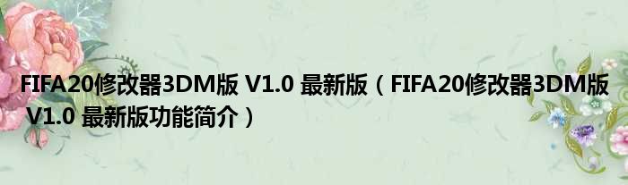 FIFA20修改器3DM版 V1.0 最新版(FIFA20修改器3DM版 V1.0 最新版功能简介)