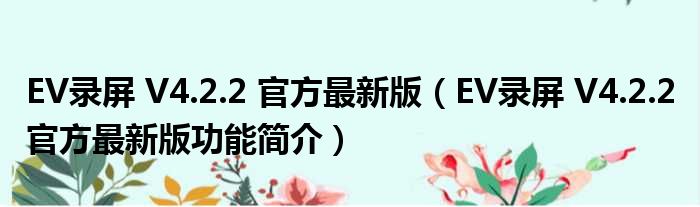 EV录屏 V4.2.2 官方最新版(EV录屏 V4.2.2 官方最新版功能简介)