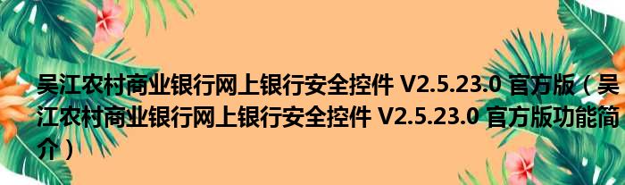 吴江农村商业银行网上银行安全控件 V2.5.23.0 官方版(吴江农村商业银行网上银行安全控件 V2.5.23.0 官方版功能简介)