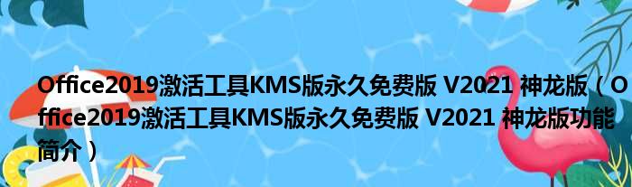 导读 大家好,关于Office2019激活工具KMS版永久免费版 V2021 神龙版,Office2019激活工具KMS版永久免费版 V2021 神龙版功能简介这个很多人还