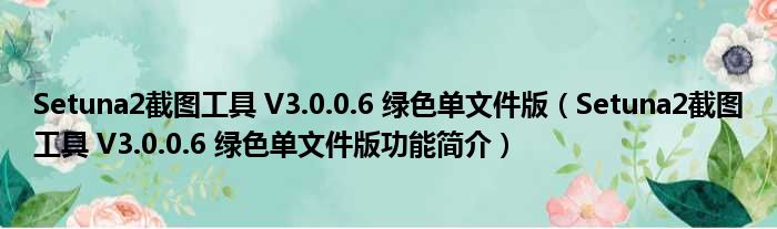 导读 大家好,关于Setuna2截图工具 V3 0 0 6 绿色单文件版,Setuna2截图工具 V3 0 0 6 绿色单文件版功能简介这个很多人还不知道,小勒来为大家
