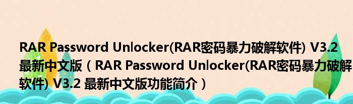 RAR Password Unlocker(RAR密码暴力破解软件) V3.2 最新中文版(RAR Password Unlocker(RAR密码暴力破解软件) V3.2 最新中文版功能简介)