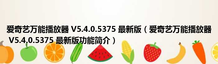爱奇艺万能播放器 V5.4.0.5375 最新版(爱奇艺万能播放器 V5.4.0.5375 最新版功能简介)