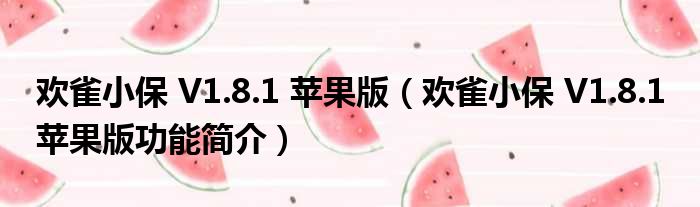 欢雀小保 V1.8.1 苹果版(欢雀小保 V1.8.1 苹果版功能简介)