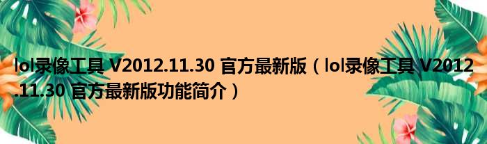 lol录像工具 V2012.11.30 官方最新版(lol录像工具 V2012.11.30 官方最新版功能简介)