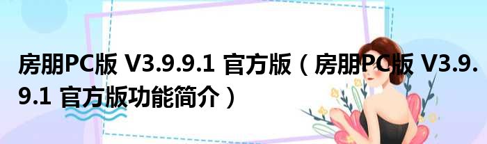 房朋PC版 V3.9.9.1 官方版(房朋PC版 V3.9.9.1 官方版功能简介)