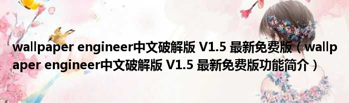 wallpaper engineer中文破解版 V1.5 最新免费版(wallpaper engineer中文破解版 V1.5 最新免费版功能简介)