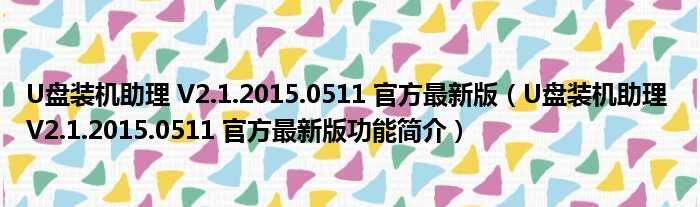 导读 大家好,关于U盘装机助理 V2 1 2015 0511 官方最新版,U盘装机助理 V2 1 2015 0511 官方最新版功能简介这个很多人还不知道,小勒来为大家