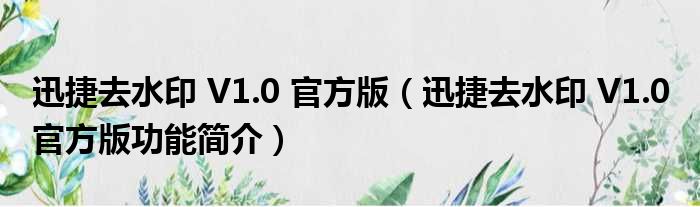 迅捷去水印 V1.0 官方版(迅捷去水印 V1.0 官方版功能简介)