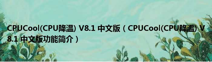 CPUCool(CPU降温) V8.1 中文版(CPUCool(CPU降温) V8.1 中文版功能简介)
