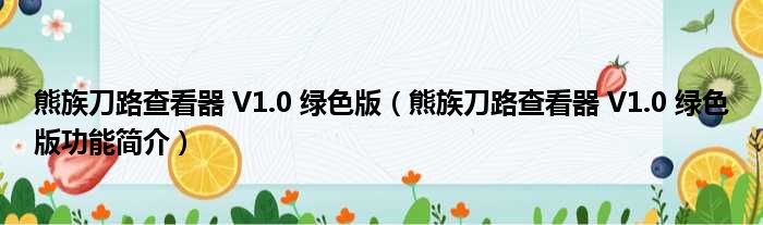 熊族刀路查看器 V1.0 绿色版(熊族刀路查看器 V1.0 绿色版功能简介)