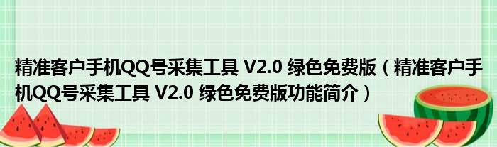 导读 大家好,关于精准客户手机QQ号采集工具 V2 0 绿色免费版,精准客户手机QQ号采集工具 V2 0 绿色免费版功能简介这个很多人还不知道,小勒来