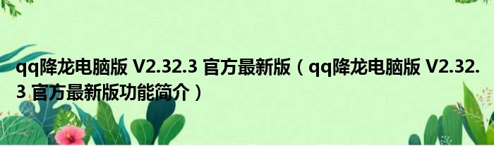 qq降龙电脑版 V2.32.3 官方最新版(qq降龙电脑版 V2.32.3 官方最新版功能简介)