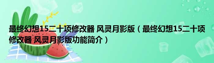 最终幻想15二十项修改器 风灵月影版(最终幻想15二十项修改器 风灵月影版功能简介)
