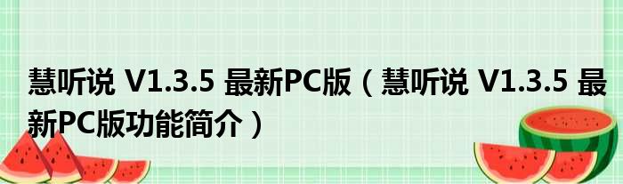 慧听说 V1.3.5 最新PC版(慧听说 V1.3.5 最新PC版功能简介)