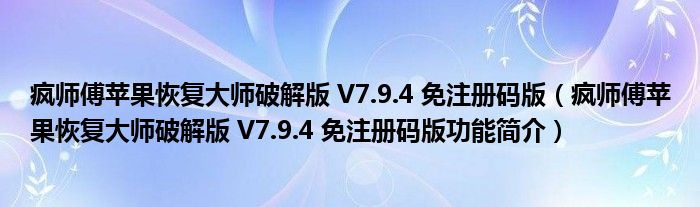 疯师傅苹果恢复大师破解版 V7.9.4 免注册码版(疯师傅苹果恢复大师破解版 V7.9.4 免注册码版功能简介)
