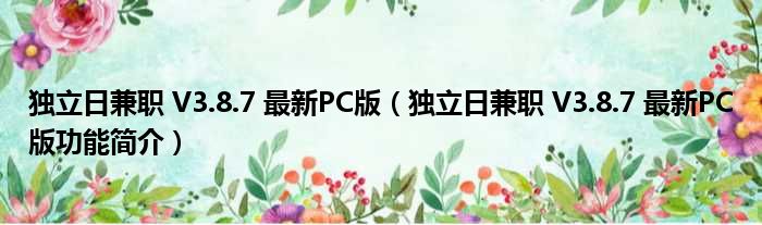 独立日兼职 V3.8.7 最新PC版(独立日兼职 V3.8.7 最新PC版功能简介)