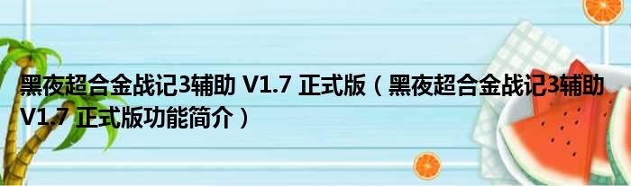 黑夜超合金战记3辅助 V1.7 正式版(黑夜超合金战记3辅助 V1.7 正式版功能简介)