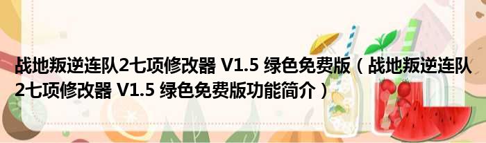 战地叛逆连队2七项修改器 V1.5 绿色免费版(战地叛逆连队2七项修改器 V1.5 绿色免费版功能简介)