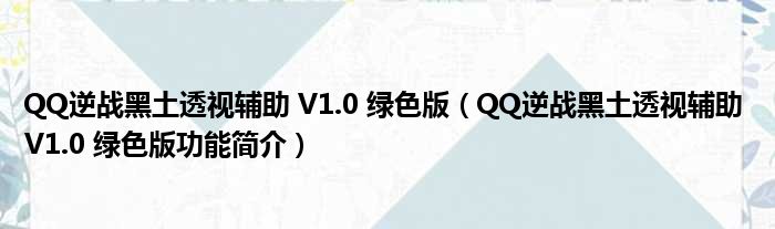 QQ逆战黑土透视辅助 V1.0 绿色版(QQ逆战黑土透视辅助 V1.0 绿色版功能简介)