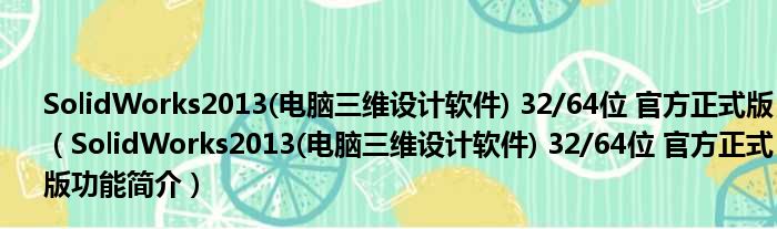 SolidWorks2013(电脑三维设计软件) 32/64位 官方正式版(SolidWorks2013(电脑三维设计软件) 32/64位 官方正式版功能简介)