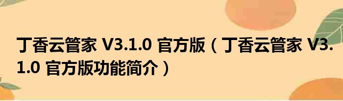 导读 大家好,关于丁香云管家 V3 1 0 官方版,丁香云管家 V3 1 0 官方版功能简介这个很多人还不知道,小勒来为大家解答以上的问题,现在让我们