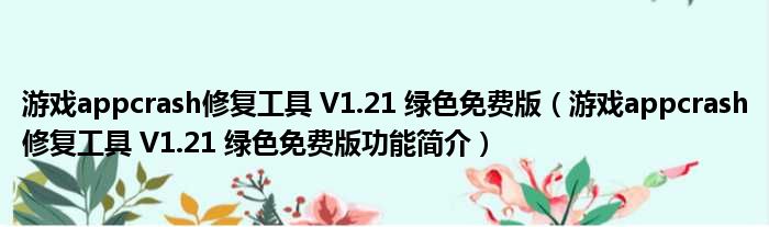 游戏appcrash修复工具 V1.21 绿色免费版(游戏appcrash修复工具 V1.21 绿色免费版功能简介)