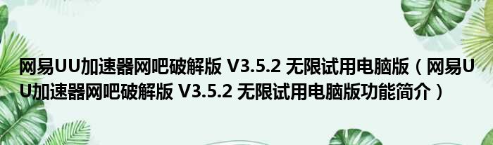 网易UU加速器网吧破解版 V3.5.2 无限试用电脑版(网易UU加速器网吧破解版 V3.5.2 无限试用电脑版功能简介)