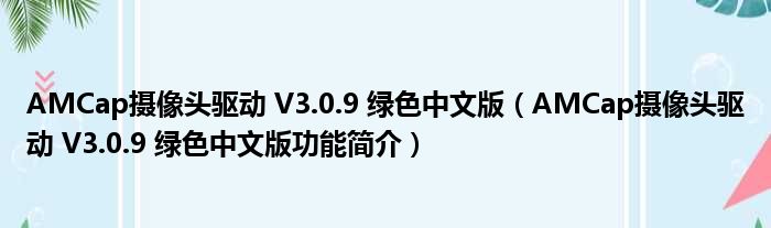 AMCap摄像头驱动 V3.0.9 绿色中文版(AMCap摄像头驱动 V3.0.9 绿色中文版功能简介)