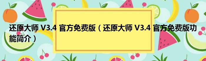 还原大师 V3.4 官方免费版(还原大师 V3.4 官方免费版功能简介)