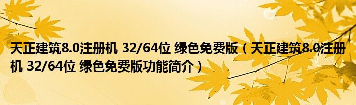 导读 大家好,关于天正建筑8 0注册机 32 64位 绿色免费版,天正建筑8 0注册机 32 64位 绿色免费版功能简介这个很多人还不知道,小勒来为大家解