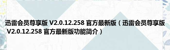 迅雷会员尊享版 V2.0.12.258 官方最新版(迅雷会员尊享版 V2.0.12.258 官方最新版功能简介)