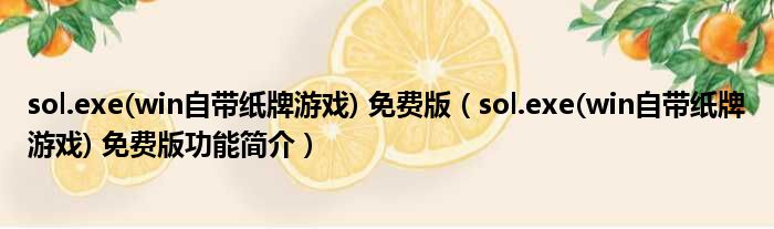 sol.exe(win自带纸牌游戏) 免费版(sol.exe(win自带纸牌游戏) 免费版功能简介)