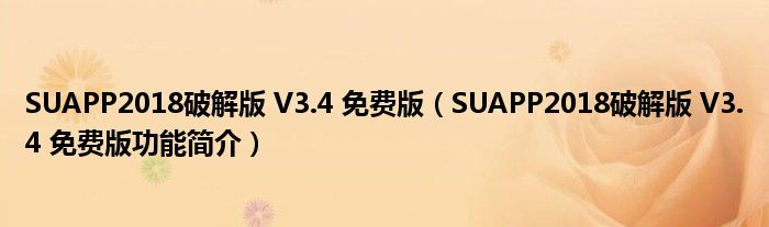 导读 大家好,关于SUAPP2018破解版 V3 4 免费版,SUAPP2018破解版 V3 4 免费版功能简介这个很多人还不知道,小勒来为大家解答以上的问题,现在