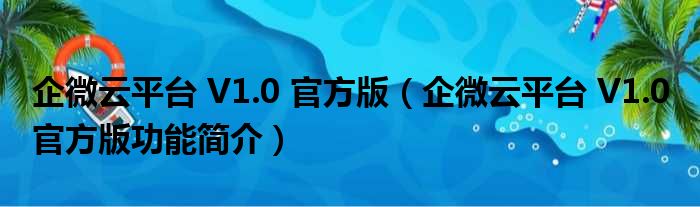 企微云平台 V1.0 官方版(企微云平台 V1.0 官方版功能简介)