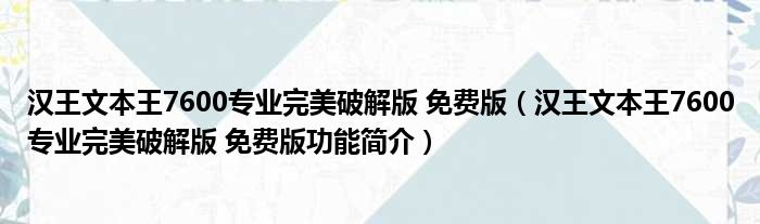 汉王文本王7600专业完美破解版 免费版(汉王文本王7600专业完美破解版 免费版功能简介)