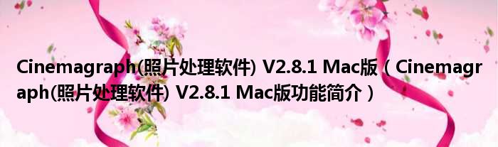 导读 大家好,关于Cinemagraph(照片处理软件) V2 8 1 Mac版,Cinemagraph(照片处理软件) V2 8 1 Mac版功能简介这个很多人还不知道,小勒来为大