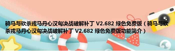 骑马与砍杀戎马丹心汉匈决战破解补丁 V2.682 绿色免费版(骑马与砍杀戎马丹心汉匈决战破解补丁 V2.682 绿色免费版功能简介)