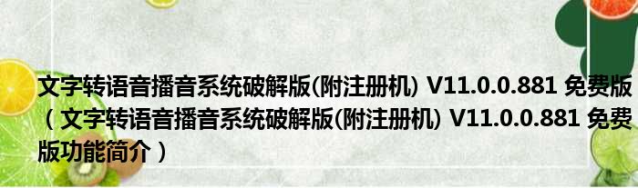 文字转语音播音系统破解版(附注册机) V11.0.0.881 免费版(文字转语音播音系统破解版(附注册机) V11.0.0.881 免费版功能简介)