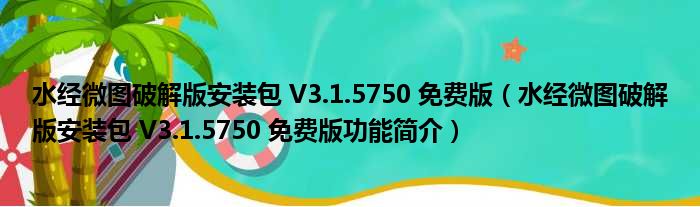 导读 大家好,关于水经微图破解版安装包 V3 1 5750 免费版,水经微图破解版安装包 V3 1 5750 免费版功能简介这个很多人还不知道,小勒来为大家