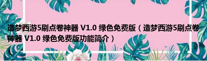 造梦西游5刷点卷神器 V1.0 绿色免费版(造梦西游5刷点卷神器 V1.0 绿色免费版功能简介)