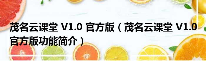 茂名云课堂 V1.0 官方版(茂名云课堂 V1.0 官方版功能简介)