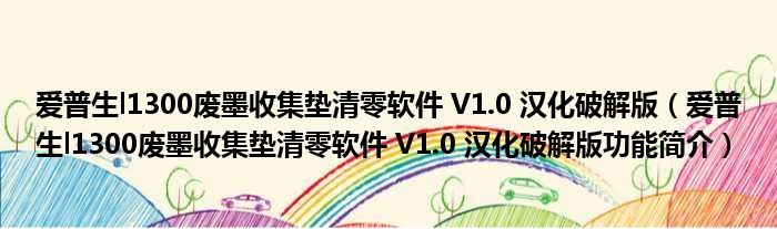 爱普生l1300废墨收集垫清零软件 V1.0 汉化破解版(爱普生l1300废墨收集垫清零软件 V1.0 汉化破解版功能简介)