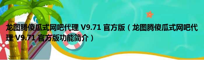 导读 大家好,关于龙图腾傻瓜式网吧代理 V9 71 官方版,龙图腾傻瓜式网吧代理 V9 71 官方版功能简介这个很多人还不知道,小勒来为大家解答以上