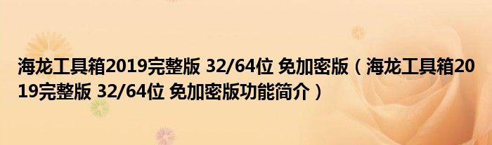 海龙工具箱2019完整版 32/64位 免加密版(海龙工具箱2019完整版 32/64位 免加密版功能简介)