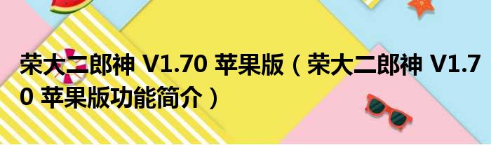 导读 大家好,关于荣大二郎神 V1 70 苹果版,荣大二郎神 V1 70 苹果版功能简介这个很多人还不知道,小勒来为大家解答以上的问题,现在让我们一
