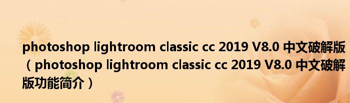 photoshop lightroom classic cc 2019 V8.0 中文破解版(photoshop lightroom classic cc 2019 V8.0 中文破解版功能简介)