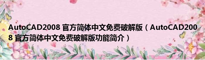 AutoCAD2008 官方简体中文免费破解版(AutoCAD2008 官方简体中文免费破解版功能简介)