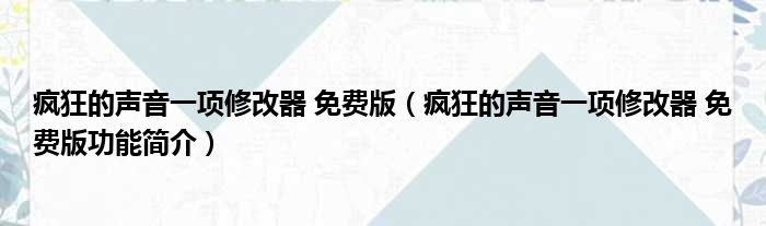 疯狂的声音一项修改器 免费版(疯狂的声音一项修改器 免费版功能简介)